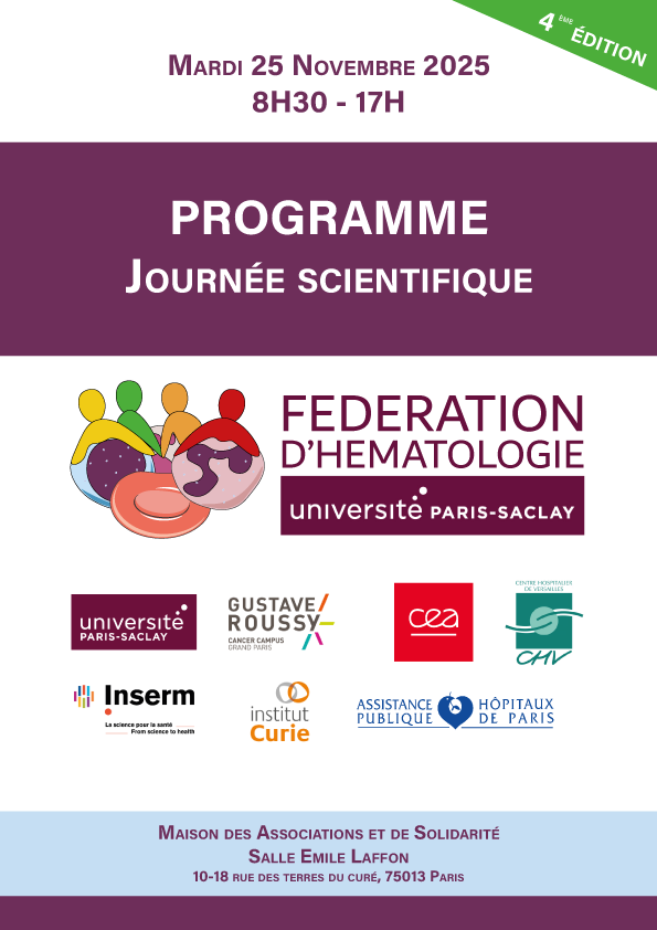 La 4ème édition de la Journée Scientifique de la Fédération d’Hématologie de l’Université Paris Saclay se tiendra le mardi 25 novembre 2025 à la Maison des Associations et de la Solidarité (MAS) à Paris.